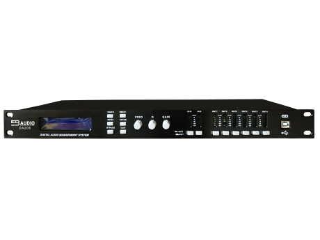 产品简介:方便灵活多分频模式,DA206 2路输入6路输出的,可设置成5种模式,包括2x2+2路分频、2x3路分频、 4+2路分频、5+1路分频,并有限幅器。每个参数段的增益调整范围为+15dB至-30dB,中心频率范围为20Hz-20kHz,Qs范围为0.4到128,每个通道输入均带有15段图示均衡(GEQ)和9段参量均衡(PEQ)出均带有8段参量均衡,均衡器(PEQ)带宽范围为1/36到4倍频程(Oct