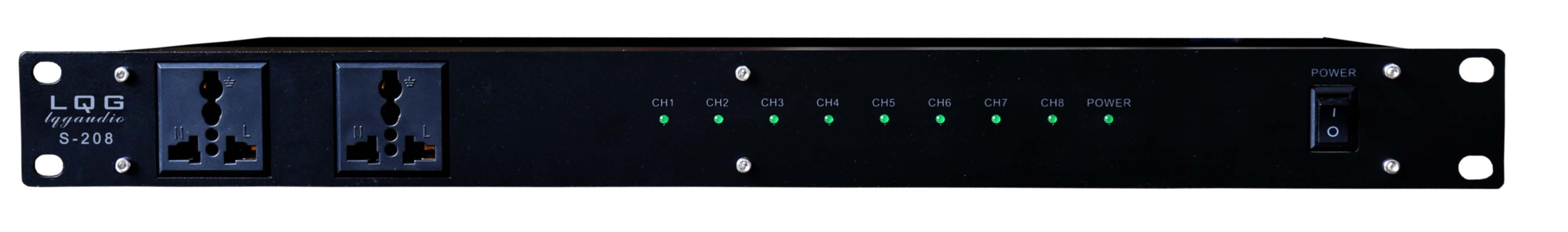 输出电源插座 万用插座,符合欧美标准。后面板8个受控万用插座