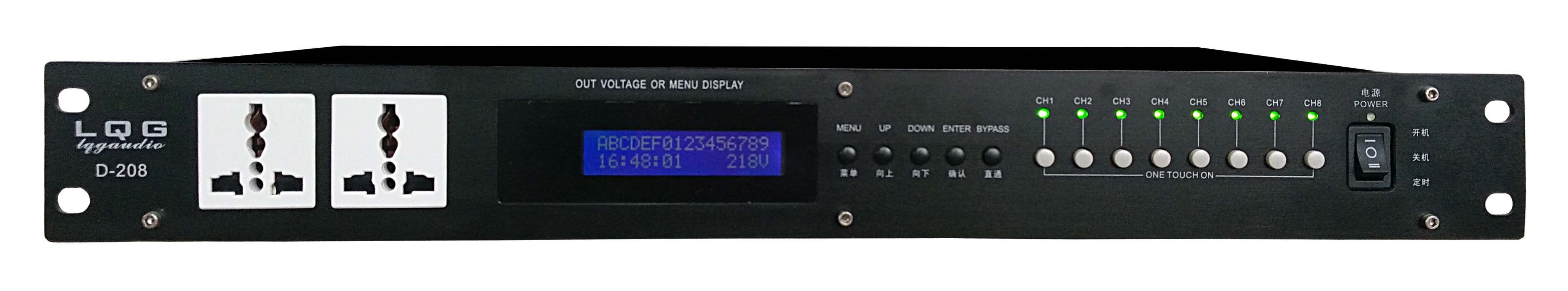 功能特点: 液晶显示、能显示时间、电压。 十组定时开机、十组定时关机。 可设置密码开机,能连接电脑。 后板有RS232接口,可连接中控。 后板8路万能插座输出、加上面板2路输出组成10路输出 基本可以满足不同需求. 技术参数: 输入电压: AC180V-AC250V 50Hz-60Hz 可控制电源: 8路均能单独控制ON/OFF 每路动作延迟时间额: 2秒 定输出电压: AC180V-AC250V 50Hz-60Hz 额定输出电流: 20A 单路输出电流: 30A 每路输出断开时: 按键指示灯 |