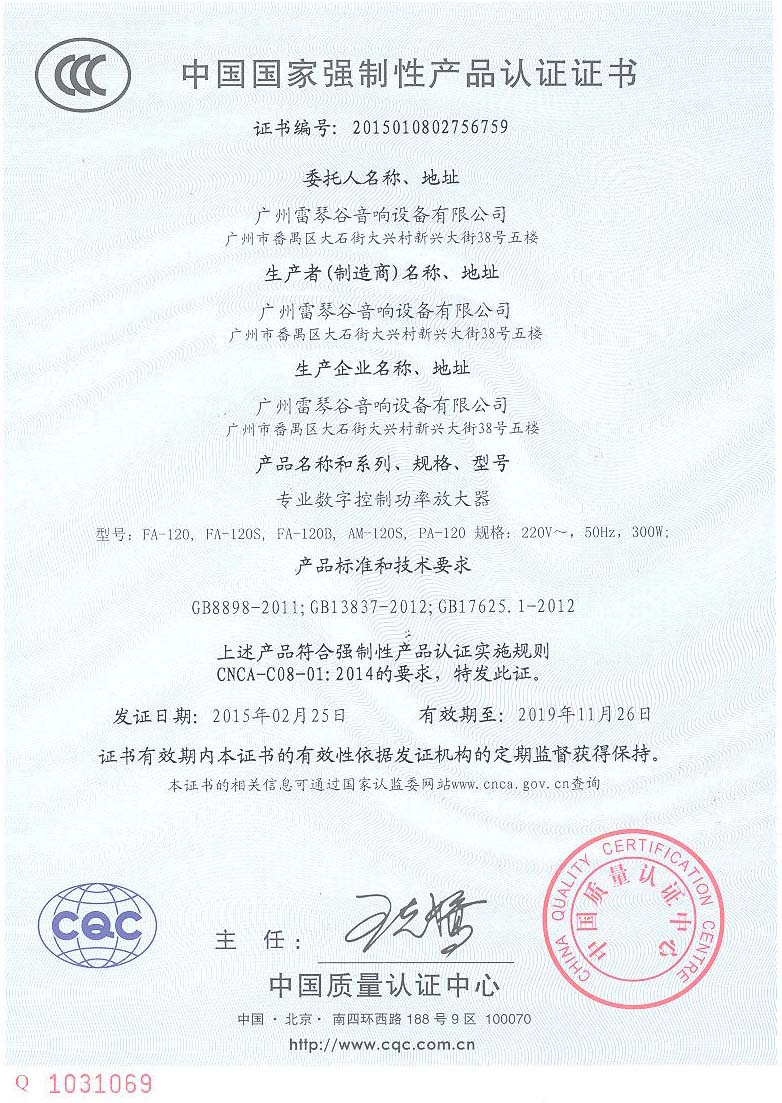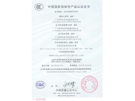 产品名称:国家3C证书